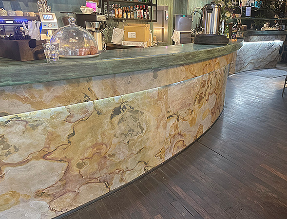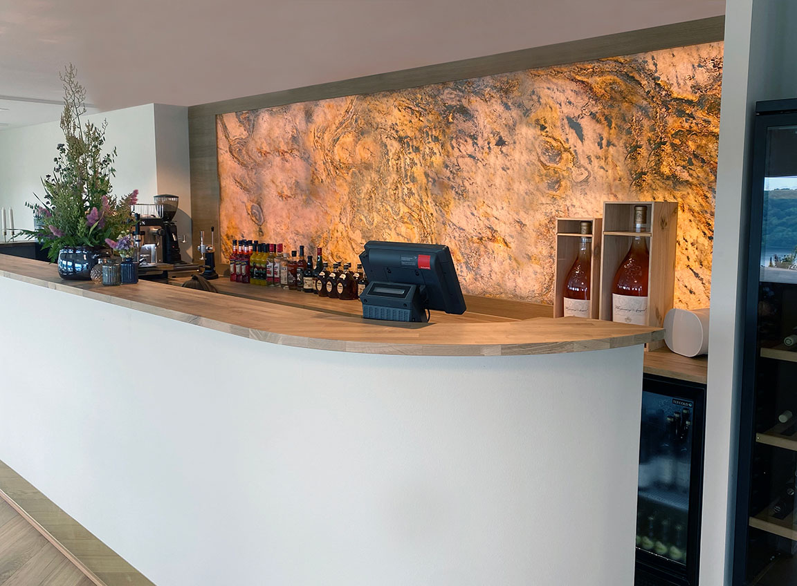 We offer unique, natural stone cladding with beautiful slate solutions, perfect for both commercial, cruise industry and private spaces. Whether for restaurants, hotels, reception areas, or other business premises, we create interior solutions with or without lighting that add a distinctive and aesthetic touch.